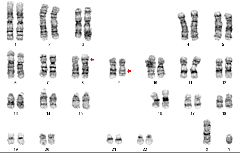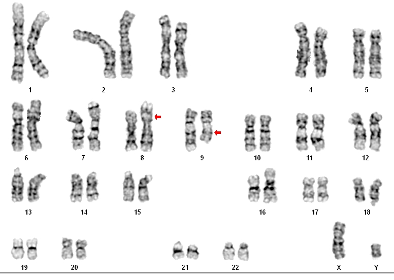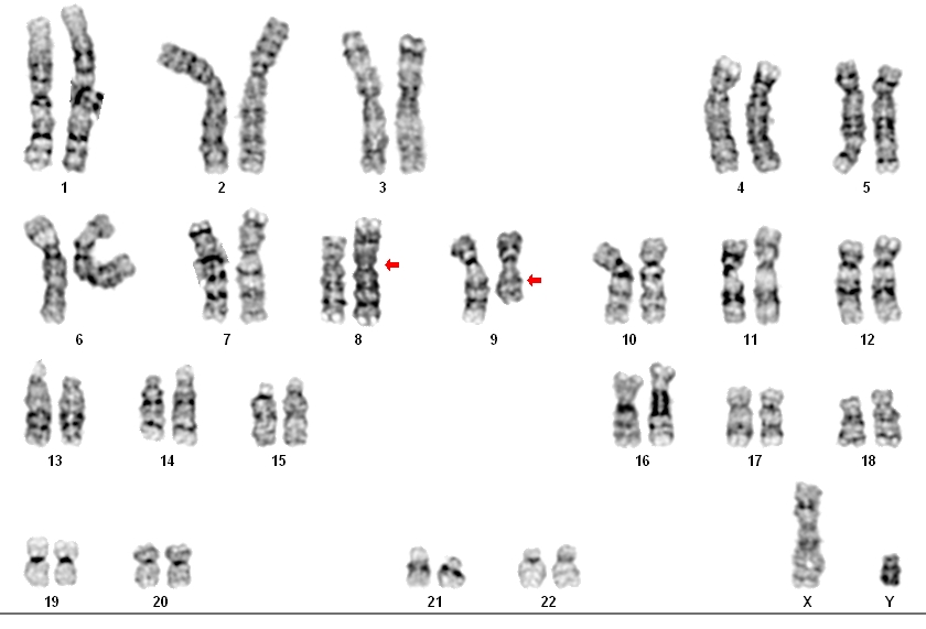 46,XY,t(8;9)(p11.2;q13).arr(1-22)x2,(XY)x1