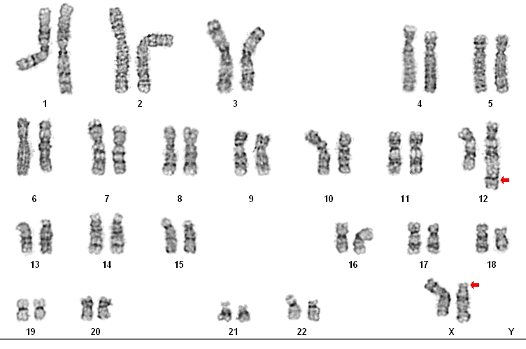 46,X,t(X;12)(p11.2;q24.33).ish t(X;12)(D12S2343+,DXZ1+;D12S2343-,DXZ1-)[8]/t(X;12)(D12S2343+,DXZ1+;D12S2343+,DXZ1-)[2].arr(1-22,X)x2