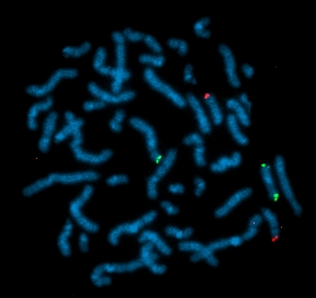 karyotype FITC detects 6pter,Texas Red detects 14qter, DAPI counterstain |